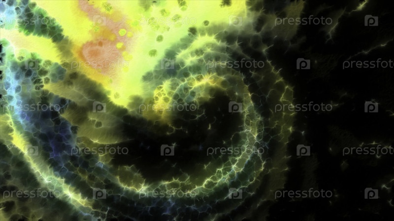 Красочное жидкое искусство чернил, вихревая подводная абстракция. Движение. Размытые частицы вращающегося торнадо, вид сверху