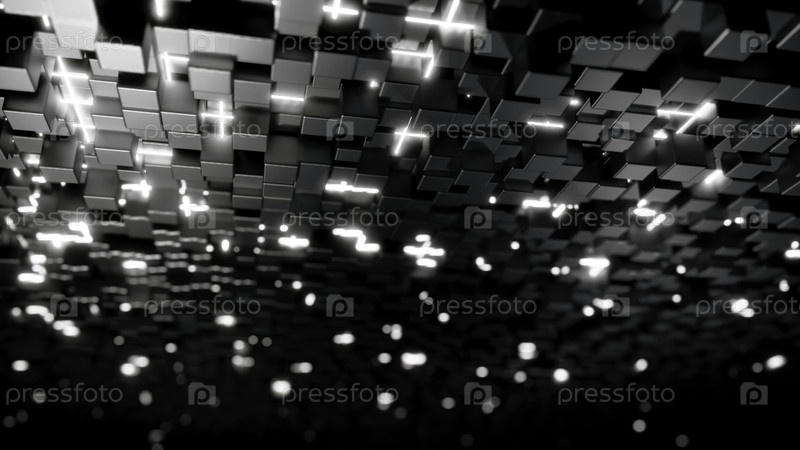 Увлекательное черно-белое видео CGI демонстрирует динамические кубики и огни