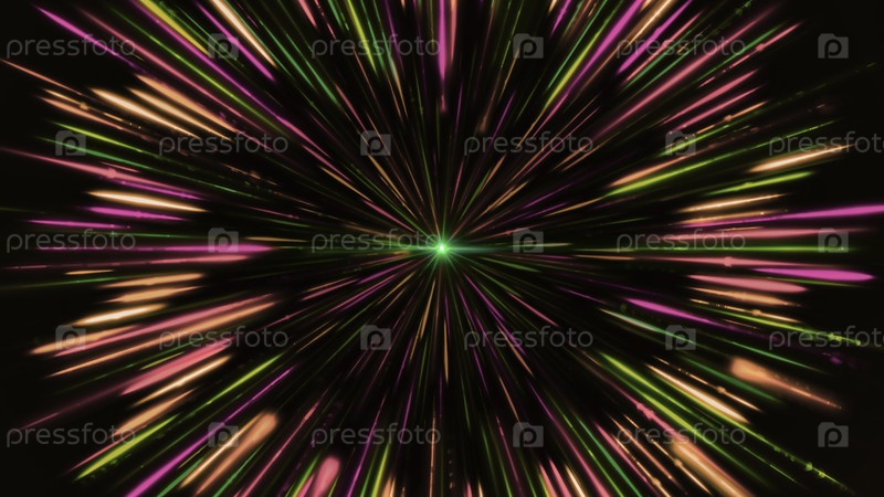 Гипнотическая точка с вращающимися красочными лучами. Анимация. Яркие многоцветные лучи кружат вокруг светящейся точки. Завораживающая анимация с вращающимися космическими лучами вокруг цветной звезды