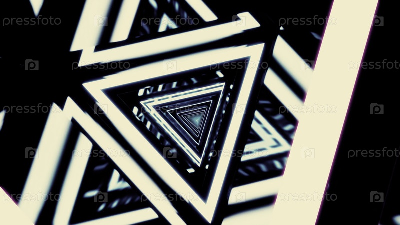 Абстрактный треугольный туннель, создающий оптическую иллюзию с светящимися неоновыми огнями