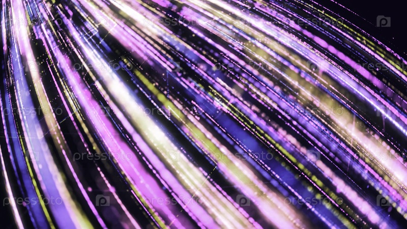 Психоделический поток ярких светящихся линий. Анимация. Ириделевый поток ярких сияющих линий искажается в киберпространстве. Поток многоцветных линий во время прыжка в киберпространстве с психоделическим эффектом