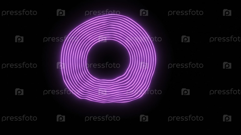 Анимация с кольцом неоновых колец, размывающихся в пространстве. Дизайн. Неонные 3D-кольца изгибаются в темном пространстве. Круг линейных неонных линий изменяется на тёмном фоне