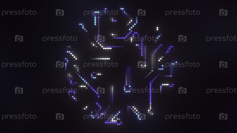 Виртуальная анимация с движущимися нейронами головного мозга.Движение.Светящие линии, двигающиеся в форме мозга.Компьютерная анимация движения импульсов в гирусе мозга