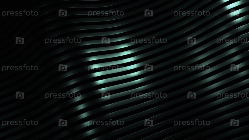 Полосатый фон с движущимися волнами. Дизайн. Красивые линии перемещаются в волнах на черном фоне. Полосатые линии со шелковистой текстурой двигаются в волнах