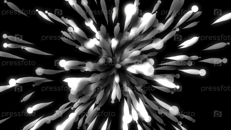Красочный взрыв абстрактных шаров. Движение. Прекрасный 3D-взрыв длинных шариков. Праздничный 3D-взрыв с воздушными шарами на черном фоне