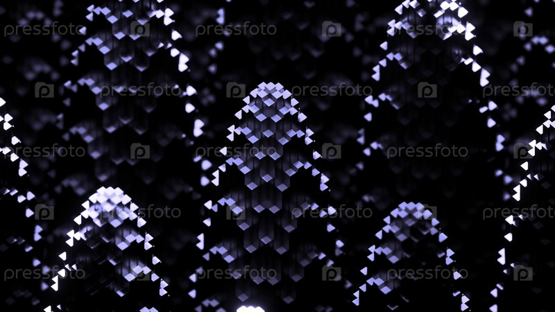 Абстрактные падающие частицы овальных форм на черном фоне. Дизайн. Водопад падающих малых треугольников