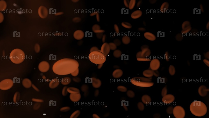Красные кровяные клетки, движущиеся по кровотоку в артерии. Дизайн. 3D-течение гемоглобинных клеток, перемещающихся через вену