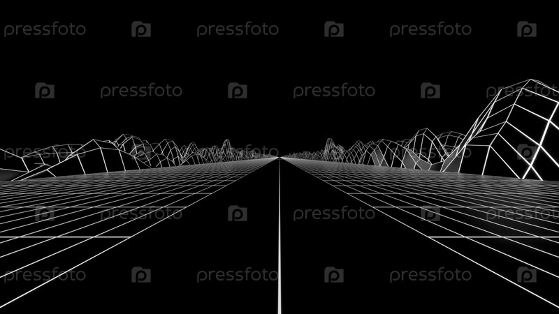 Черный фон. дизайн. яркие белые сетки, которые создают горы и дороги в анимации