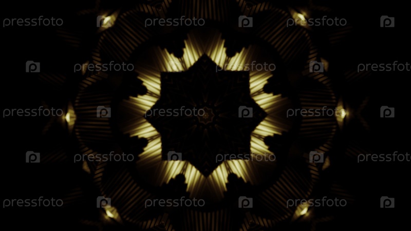 Золотые формы на черном фоне, абстрактные объекты.Дизайн.Распространение и пульсирующие круговые фрактальные звезды