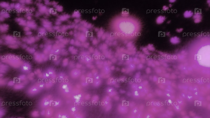 Абстрактная анимация светящихся болезненных шаров. Движение. Пушистые светящиеся шарики, летающие в космосе. Шары аллергенов или бактерий