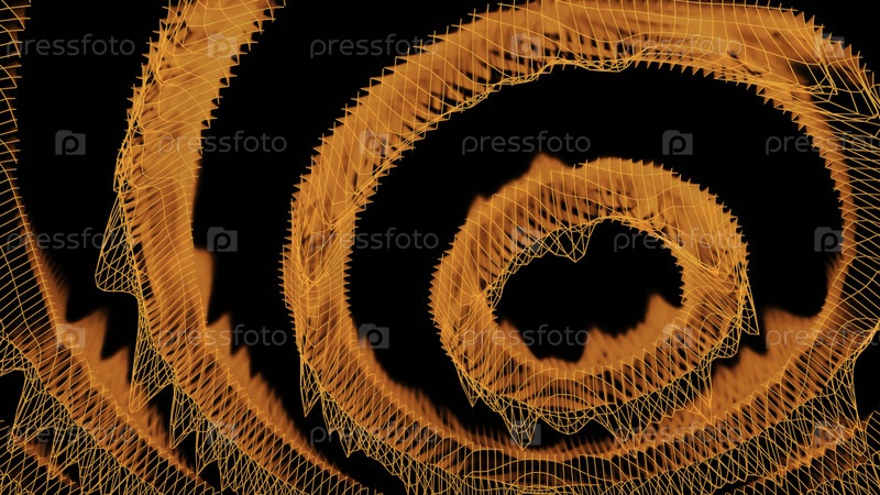 Волновые кольца с киберсетевыми волнами. Дизайн. Виртуальная сетка с вибрациями и волнами, движущимися по кольцам. Волновые решетки на передвигающихся кругах на черном фоне