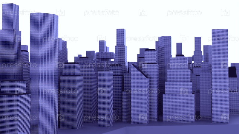 Городская планировка с небоскребами. Дизайн. Виртуальный 3D-город с многоэтажными зданиями. Цветовая 3-D модель города с небоскребами отображается на белом фоне