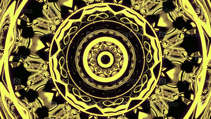 Гипнотический рисунок с яркими неоновыми кругами в потоке. Дизайн. Неоновая светящаяся картина в потоке с кольцами на черном фоне. Круги киберплазменного рисунка в туннеле
