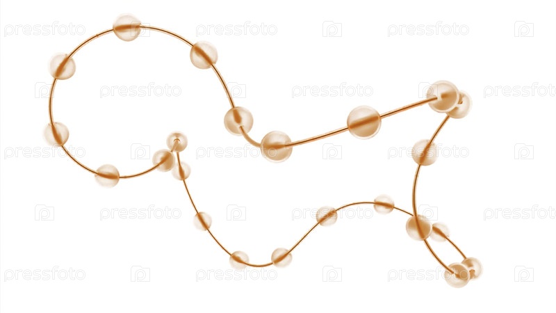 Абстрактная изогнутая линия с красочными неоновыми освещенными сферами. Дизайн. Прозрачные шары, быстро бегущие вдоль струны