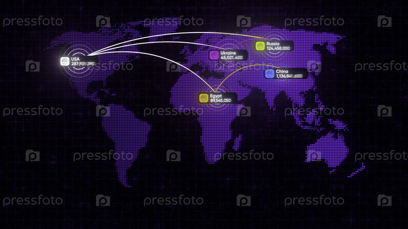 Фиолетовая анимация. движение. яркий график, показывающий рост населения на нашей планете и в разных странах отдельно. высокое качество 4k кадры
