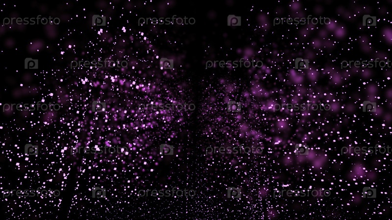 Розовый космический фон с летающими частицами. Дизайн. Крошечная маленькая космическая пыль, летящая во Вселенной