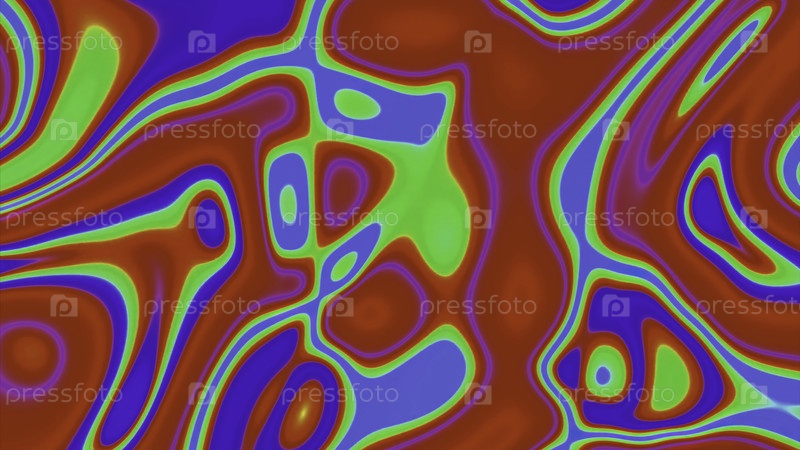 Абстрактный психоделический фон с красочными кислотными пятнами. Дизайн. Движение многоцветных трансформирующих форм