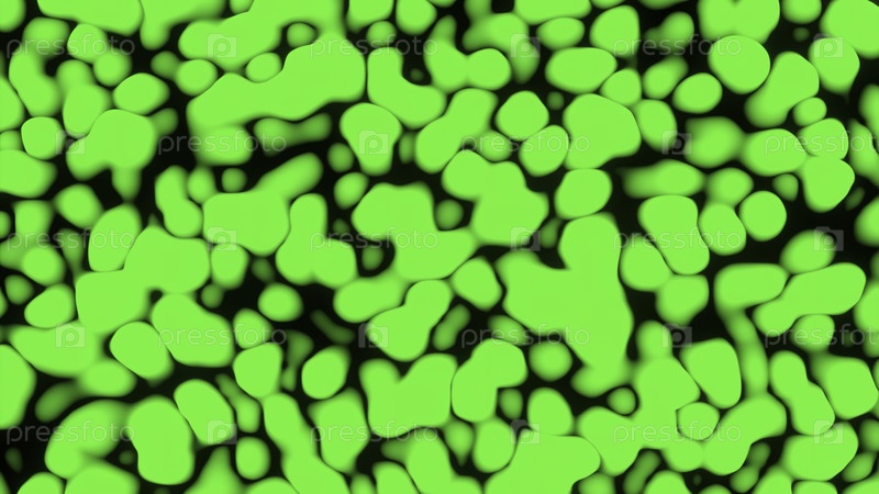 Абстрактная яркая анимация различных форм и фигур. Дизайн. Зеленое чуждоземельное вещество, покрытое черной тенью