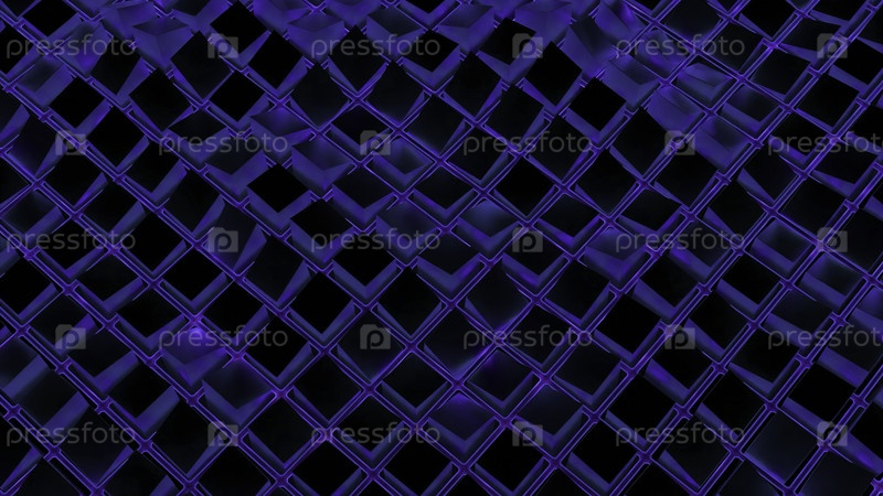 Виртуальная сетка с эффектом водной волны. Действие. Квадратная сетка движется в волнах с блеском воды. Абстрактный бассейн квадратной решетки с движущимися волнами на черном фоне