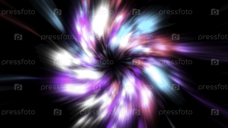 Цветный световой поток в пространстве. Движение. Красочные пятна движутся в потоке на черном фоне. Красочный световый поток в гипертунеле
