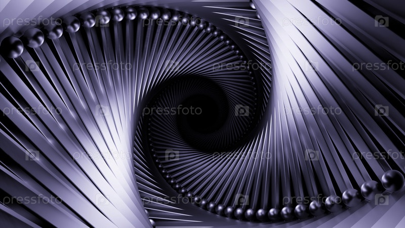 Абстрактный гипнотический металлический вращающийся вихрь.Дизайн.Оптическая иллюзия полета внутри тунеля круглой формы