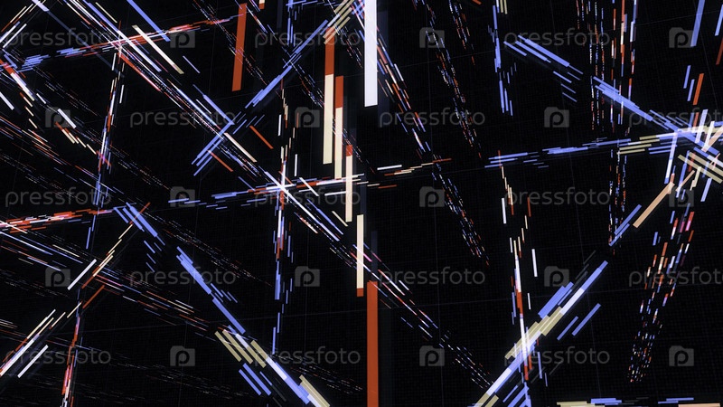 Абстрактная анимация 3D-матрицы киберпространства с штрихами.Анимация.Многоуровневый на черном фоне 3D пространство с различными потоками матричных штрихов