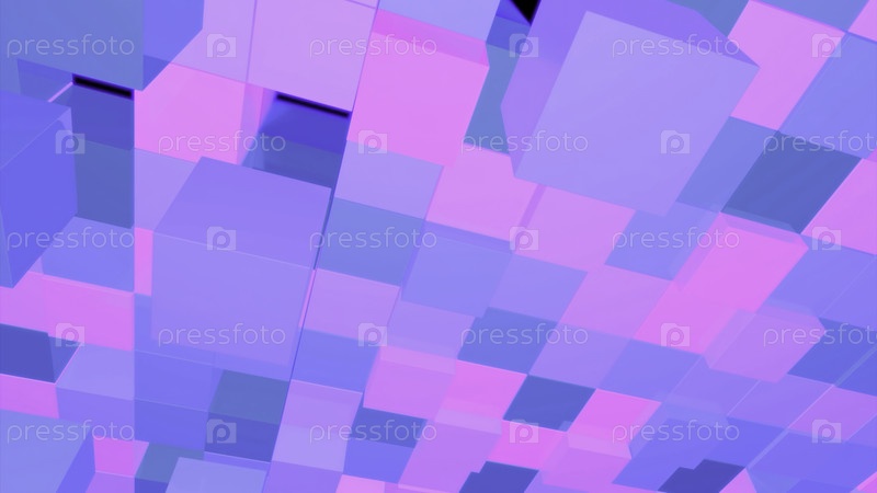 Абстрактные яркие кубики, движущиеся вверх и назад на черном фоне. Дизайн. Прыжки цветных 3D-кубов