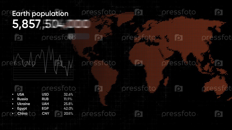 Диаграмма с территорией планеты.Движение.Зеленый и красный фон с демографическим показателем в анимации