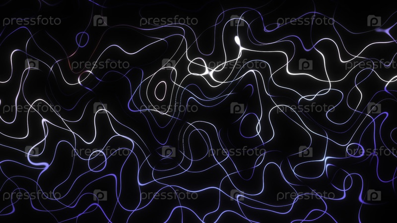 Абстрактные светящиеся неоновые световые линии, образующие сложный сетевой шаблон на темном фоне