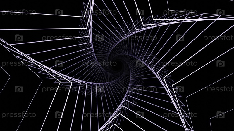 Гипнотическая 3D-спираль в форме звезды. Дизайн. Линии 3-д макета движутся по спирали на черном фоне. Спирал контурных линий в виде вращающейся звезды