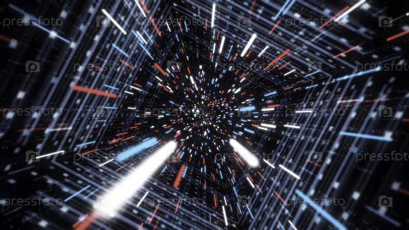 Звездный поток с светящимися полосами в туннеле. Анимация. Киберпространство тоннеля с захватывающим 3D-потоком неоновых линий. Красивый космический туннель из сияющих неонных линий и частиц