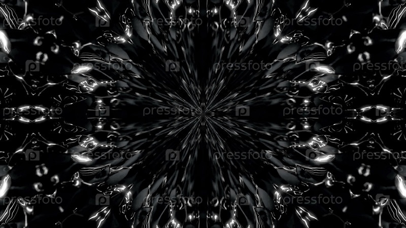 Абстрактный монохромный симметричный рисунок перьев на черном фоне, бесшовная петля.Калейдоскопические абстрактные овалы всасываются в центральную точку