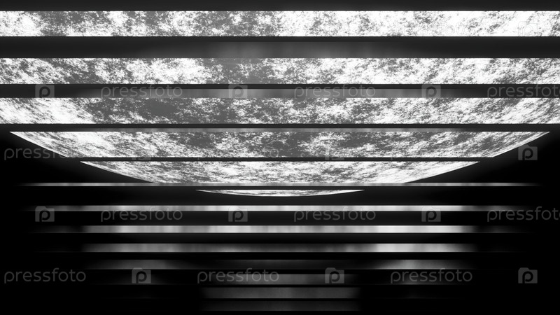 Абстрактная серебряная луна в космическом пространстве.Дизайн.Параллельные горизонтально протекающие линии