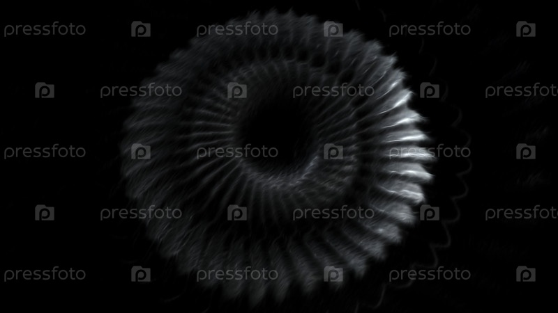 Черный фон.Движение.Огромная длинная пружина серого и синего цвета движется в спирали в анимации