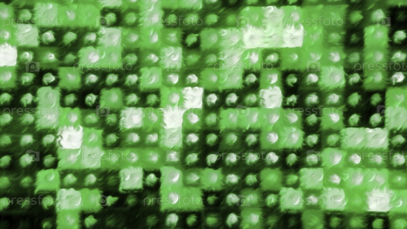Зеленый и желтый фон с мозаикой. Движение. Освещенные квадраты небольшого размера, выполненные в компьютерной графике. Высокое качество 4k кадров