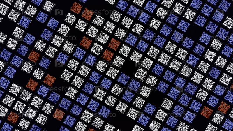 Многоцветная анимированная мозаика на черном фоне.Анимация.Многие красочные квадраты перемещаются в потоке мозаики.Электронная мозаика с квадратами, несущими информацию в киберпространстве