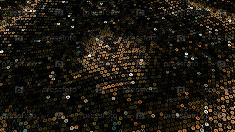 3D-волны в кибернетическом поле.Анимация.Живые волны на футуристическом поле с ячейками.Поле с числовыми клетками пульсирует с объемными волнами