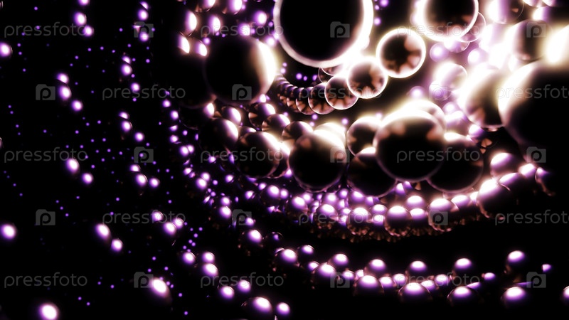 Быстро вращающиеся розовые светящиеся бусы яркий фон. Дизайн. Торнадо частиц на черном фоне