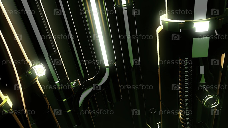 Ярко-зеленые провода.Движение.Абстракция, которая показывает яркие трубы с зеленым освещением, которые движутся вперед.Высокое качество 4k кадры