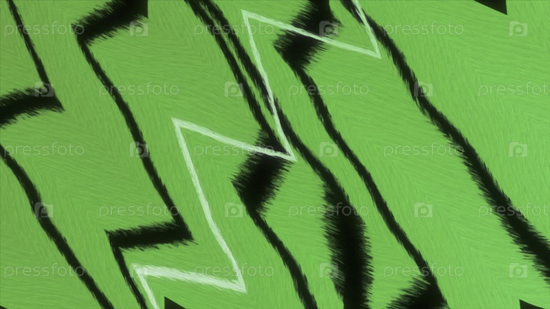 Зеленый и желтый фон. Движение. Треугольные линии белого и черного цвета рисуют рисунки в абстракции