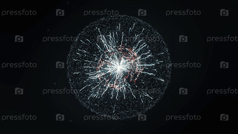 Абстрактная концепция электрической энергии.Анимация.Красивая абстрактная молния и яркий свет в энергетическом шаре с молниеносом на черном фоне