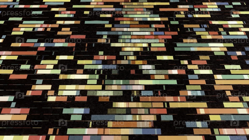 Абстрактные красочные разные сегменты, текущие на черном фоне, бесшовная петля. Анимация. Красочные линии, напоминающие простой интерфейс видеоигры