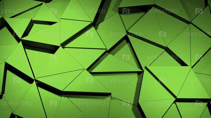 Зеленый и бирюзовый фон. Дизайн. Треугольные части кадров, которые отсоединяются в 3D