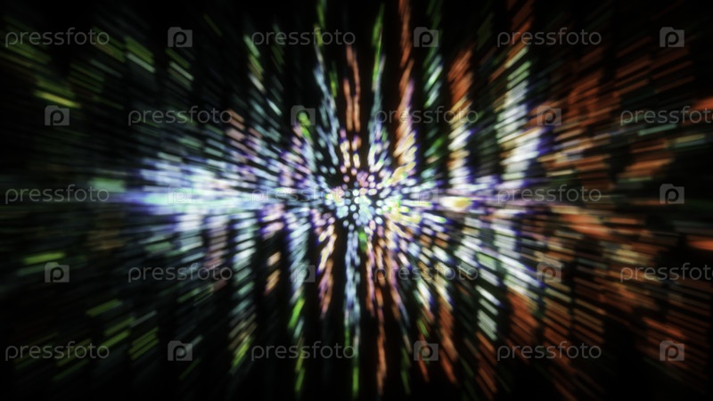 Радиальные световые следы создают абстрактный, красочный взрыв с размытым движением на темном фоне