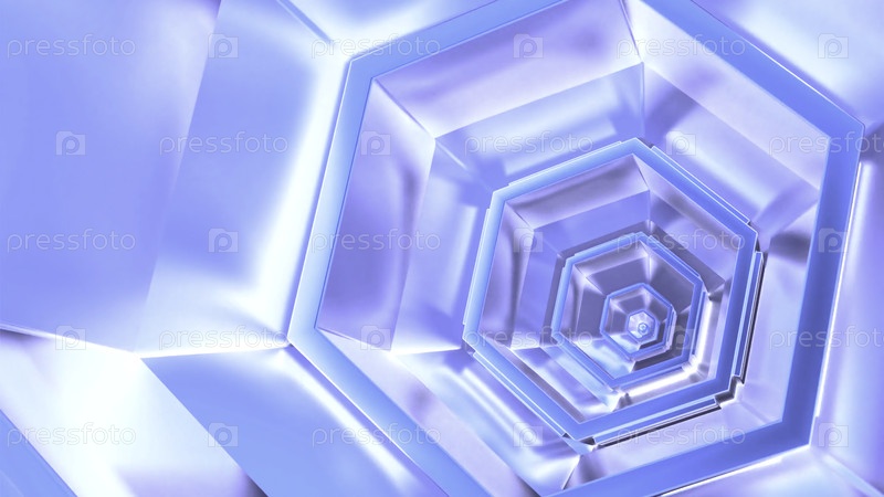 Анимация падения в красочном шестиугольном научно-фантастическом туннеле.Движение. Яркий коридор фрактальной формы