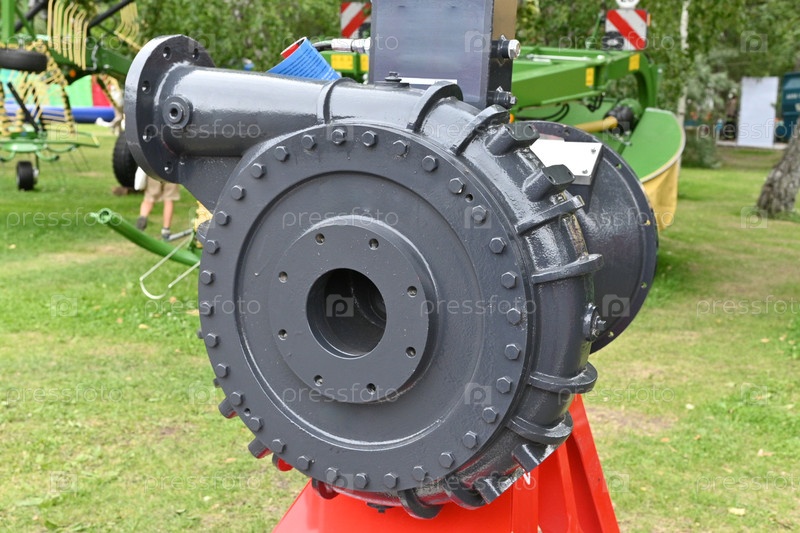 Новая модель сельскохозяйственного оборудования на мероприятии под открытым небом. Посетители могут увидеть машину вблизи и узнать о ее функциях