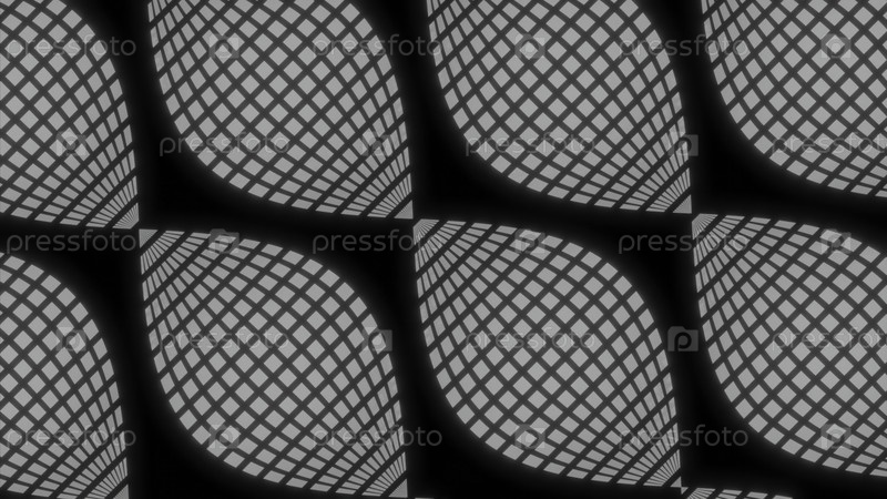 Движущийся рисунок с ретро 3D линиями. Дизайн. Абстрактные цветочные линии перемещаются на черном фоне. Линии со стволом движутся в 3D-рисунке с сеткой
