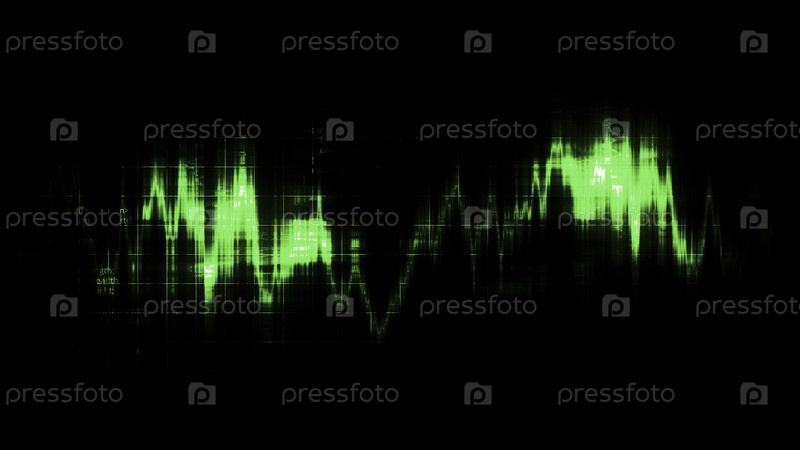 Черный фон.Движение.Зеленая графика, которая поднимается и падает в разных направлениях в анимации