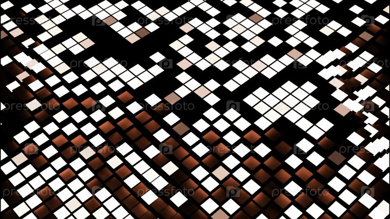 Поверхность с квадратами и движущимися искажениями волны. Дизайн. 3D-поверхность квадратов и волн. Волновые искажения на поверхности со квадратными пикселями на черном фоне