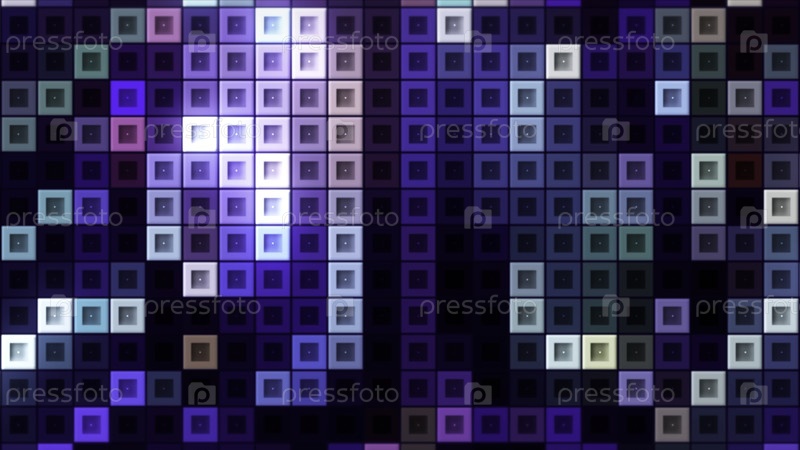 Красивая многоцветная мозаика в абстракции. Движение. Неон ярко-фиолетовые кубики блестят разными цветами